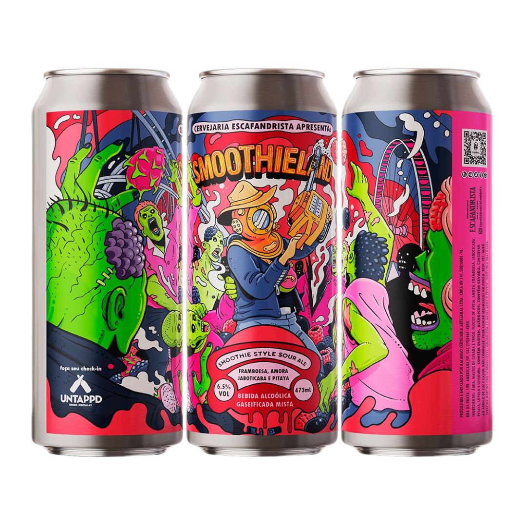 Smoothieland é uma homenagem vibrante e colorida a um ícone moderno da cinematografia de zumbis, conhecida por seu humor, diversão e muito "sangue". Com 6,5% de teor alcoólico, esta Smoothie Style Sour Ale captura a essência dessa mistura única, trazendo um toque de brasilidade a uma combinação divertida e visualmente impactante.